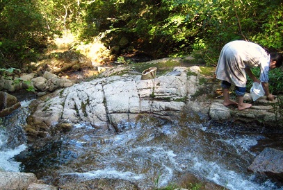 上の写真は全く関係なく、近所の川で苔採取に勤しむ、丸い店主の図。笑