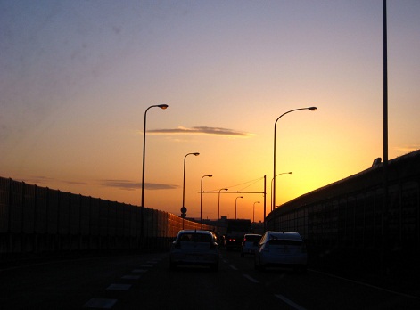 写真は、朝7時前に池田の手前で見た朝焼けの空。