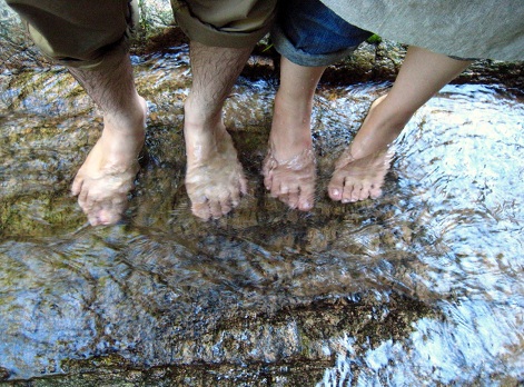 川で。